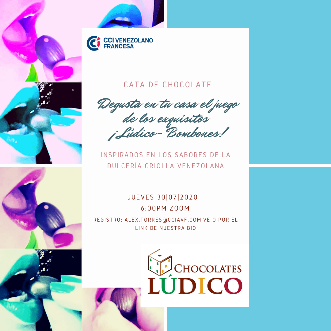 La CCIAVF tiene el grato placer de invitar a sus afiliados a disfrutar de la Cata Virtual de Chocolates Lúdico , una experiencia que los llevará a transitar por un “viaje sensorial”, en una degustación de chocolates diferente y memorable, guiada a través de una plataforma de reuniones en línea y disfrutada desde la comodidad de sus hogares, con un toque de distinción, innovación y venezolanidad.