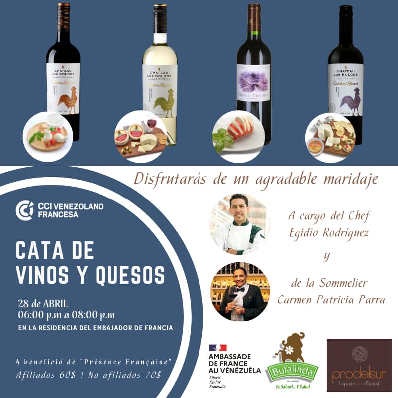 La CCIAVF tiene el placer de invitarlos a su próxima Cata de Vinos y Quesos, una ocasión especial para disfrutar de un exquisito maridaje a Cargo del Chef Egidio Rodríguez y de la Sommelier Carmen Patricia Parra, comprendido por: