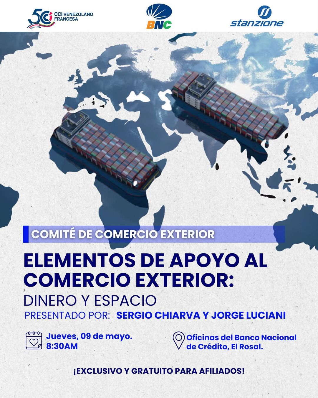 No se pierdan la oportunidad de ampliar sus conocimientos y habilidades en el ámbito comercial con la próxima ponencia “ELEMENTOS DE APOYO AL COMERCIO EXTERIOR: DINERO Y ESPACIO”.