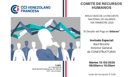Tenemos el placer de invitarlos a nuestro Comité de Recursos Humanos "El desafío del pago en dólares", el cuál estará a cargo de nuestro invitado especial Raúl Briceño, Director General de CONESTRUCTURAS, quien ofrecerá todos los detalles asociados a este interesante y vital tema para la empresas venezolanas.