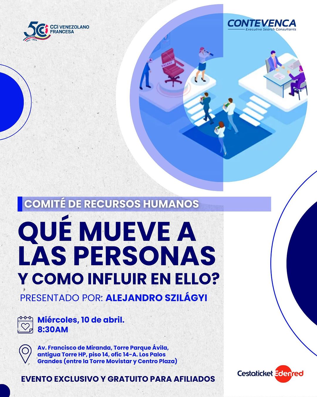 El evento se estará llevando a cabo en la oficinas de Cestaticket Edenred, el próximo 10 de abril a las 08:30 AM