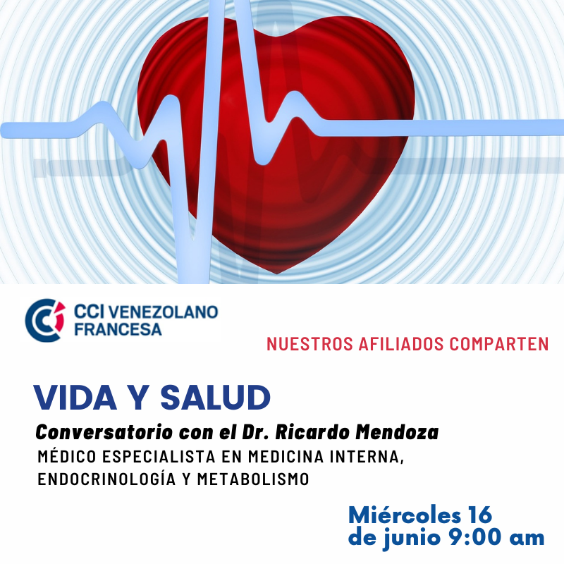 El Comité de Salud de la CCIAVF, en el marco de la nueva categoría de actividades y eventos denominada "Nuestros afiliados comparten", se complace en invitarlos a participar en el Conversatorio Vida y Salud, que contará con la presentación del Dr. Ricardo Mendoza.