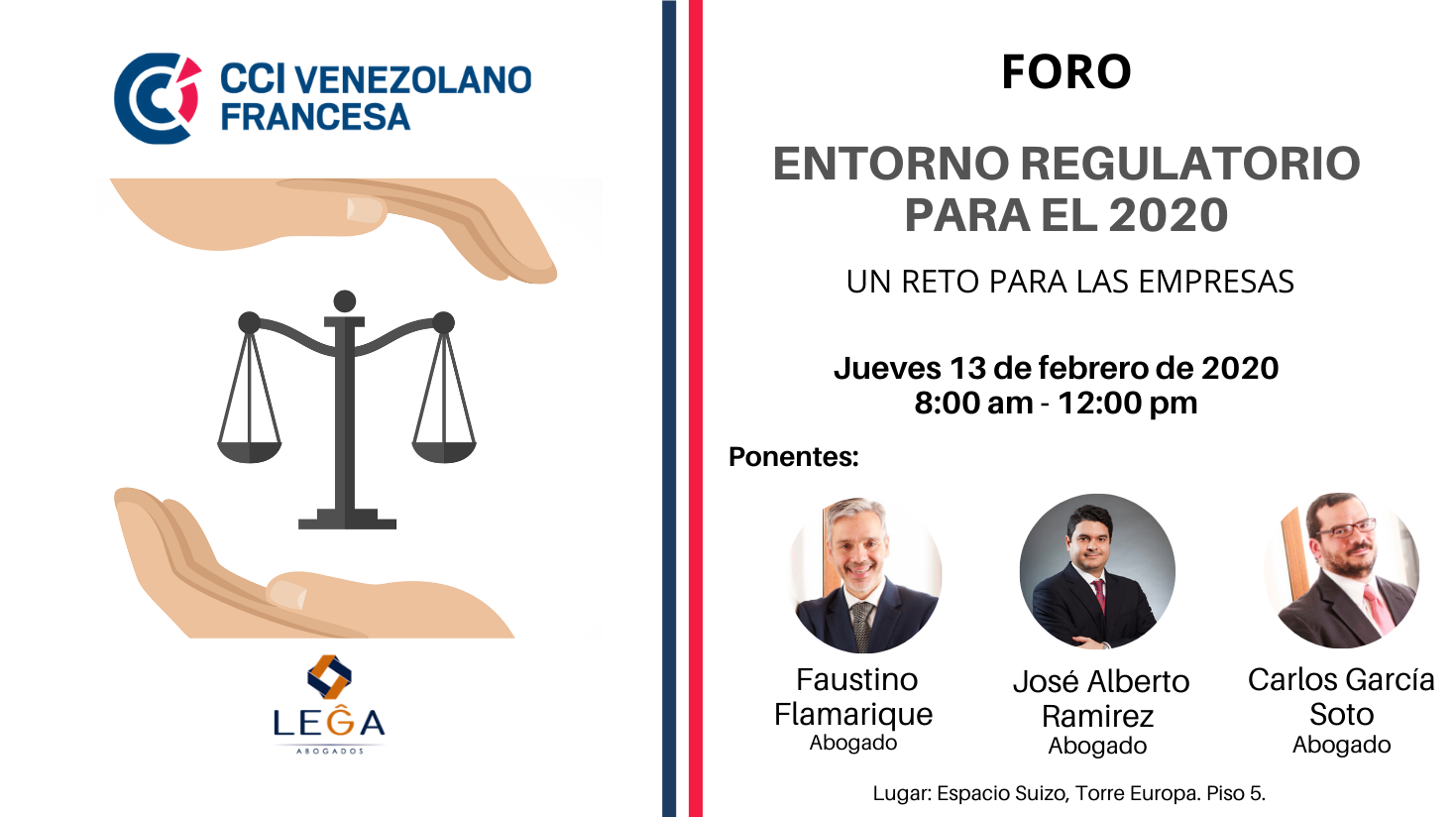 La CCIAVF se complace en invitarles al Foro Entorno Regulatorio para el 2020: Un reto para las empresas, en donde contaremos con las ponencias de Carlos García Soto, Faustino Flamarique y José Alberto Ramírez de LEGA Abogados, quienes estarán ofreciendo valiosa información en temas relacionados a: