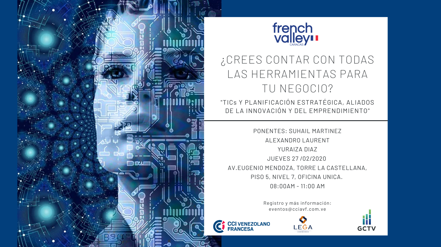 El proyecto French Valley Caracas de la CCIAVF te invita a disfrutar de su primer evento del año: ¿Crees contar con todas las herramientas para tu negocio? | TIC's y planificación estratégica, aliados de la innovación y el emprendimiento.