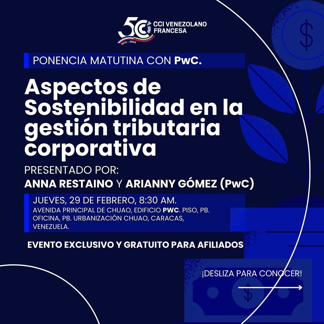 Presentada por Anna Restaino (Socia de la Línea de Servicios Tributarios y Legales en PwC Venezuela) y Arianny Gómez (Gerente de Servicios Tributarios y Legales en PwC Venezuela).