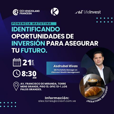 Tenemos el agrado de invitarles a participar en la ponencia matutina "Identificando oportunidades de inversión para asegurar tu futuro", a cargo de Asdrubal Rivas, MD Portafolio Manager en LifeInvest Wealth Management.