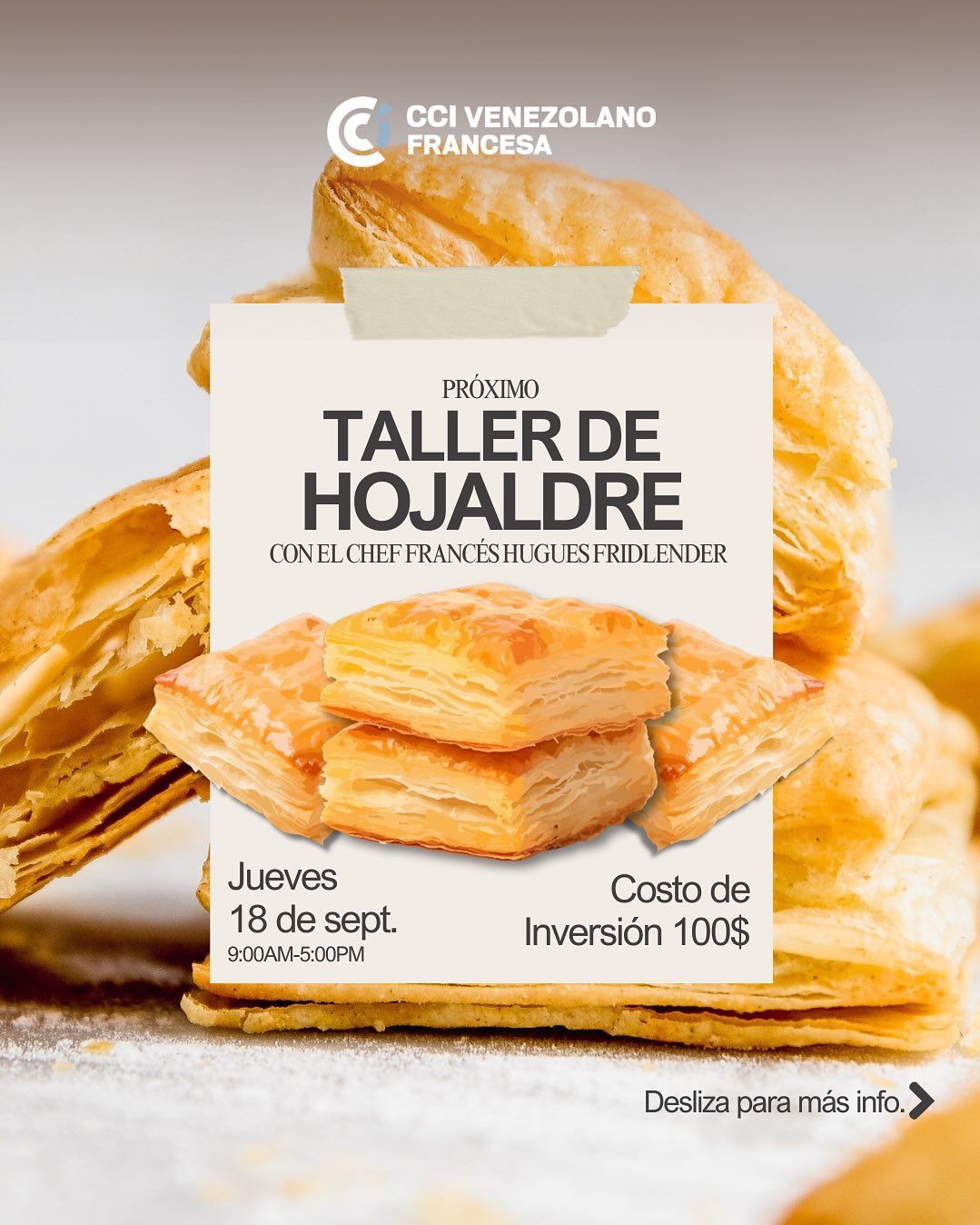 ¡No dejes pasar esta oportunidad de perfeccionar tu técnica y descubrir el universo del hojaldre francés de la mano de un maestro!