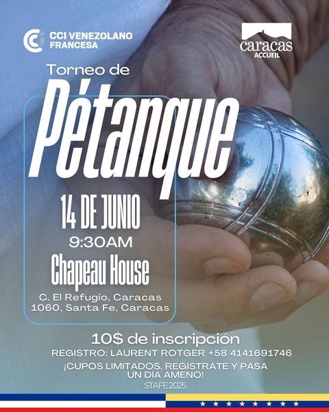 Caracas Accueil y la Cámara de Comercio Venezolano-Francesa te invita a la Segunda Edición de su Torneo de Petanca, una mañana para disfrutar, competir y conectar entre amigos, gastronomía y cultura.