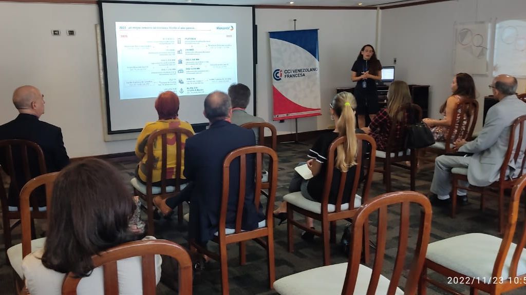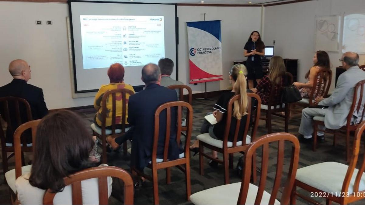 El pasado miércoles 23 de noviembre, nuestro afiliado Banco Mercantil, compartió en sus espacios, una interesante presentación sobre las Perspectivas Económicas para el próximo 2023. Con la presencia de los invitados del Comité Gran Empresa y miembros de la Junta Directiva de la Cámara de Comercio Venezolano Francesa, se contó con la destacada exposición de la Economista Carmen Julia Noguera, quien brindó una visión estadística sobre aspectos macroeconómicos y financieros en Venezuela y posibles escenarios para el año 2023. La ocasión también permitió la interacción e intervención de los presentes en temas de interés.