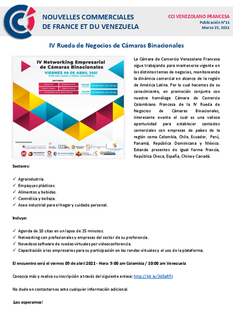 Nouvelles Commerciales de France et du Venezuela es una publicación digital de frecuencia mensual que nace con el objetivo de convertirse en una ventana informativa para nuestros lectores, en donde podrán encontrar las noticias más destacadas del acontecer comercial en Francia, Venezuela y el mundo.